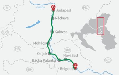 You will mostly cycle on well-paved roads. In Hungary, you have the option of using embankment paths that are not fully tarmacked. The route runs on cycle paths and small side roads with little car traffic, as well as roads with heavier traffic. You should also expect increased traffic when entering or leaving the large cities of Budapest, Novi Sad and Belgrade.
